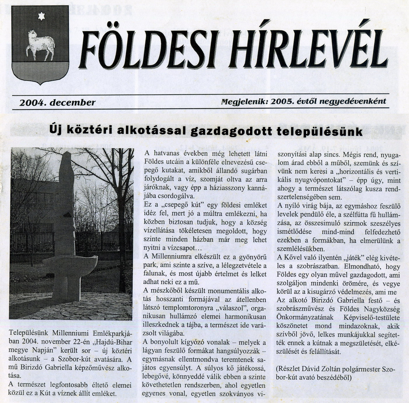 Emlékművek a Földesi Hírlevélben