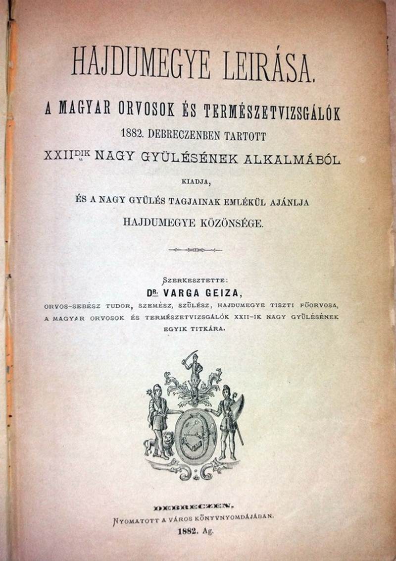 könyve: „Hajdúvármegye és Debrecen sz. kir. város Adattára”. A Varga Geyza