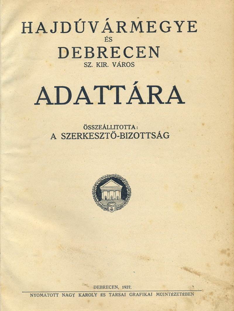 részében átveszi az 1937-es Hajdúvármegye és Debrecen sz. kir. város Adattára