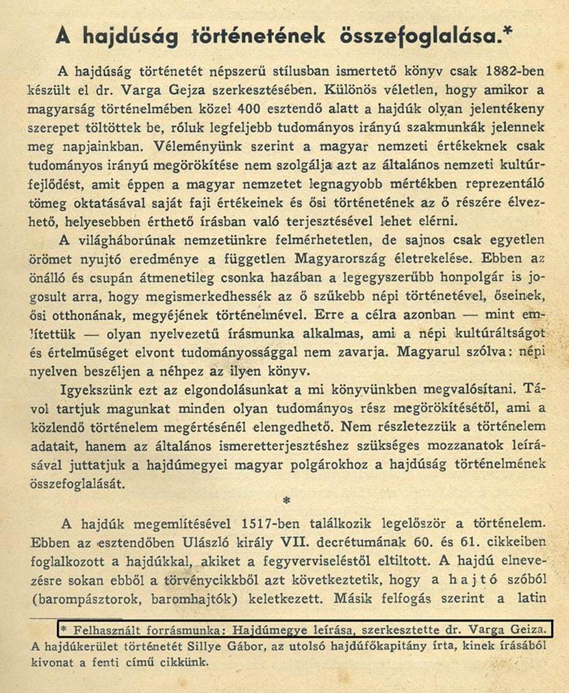 Hajdú vm. tört.”szerkesztői hitelesek és azt írják le könyvükben a Varga