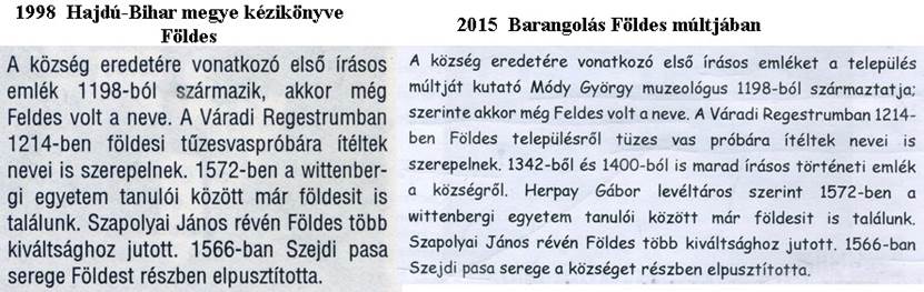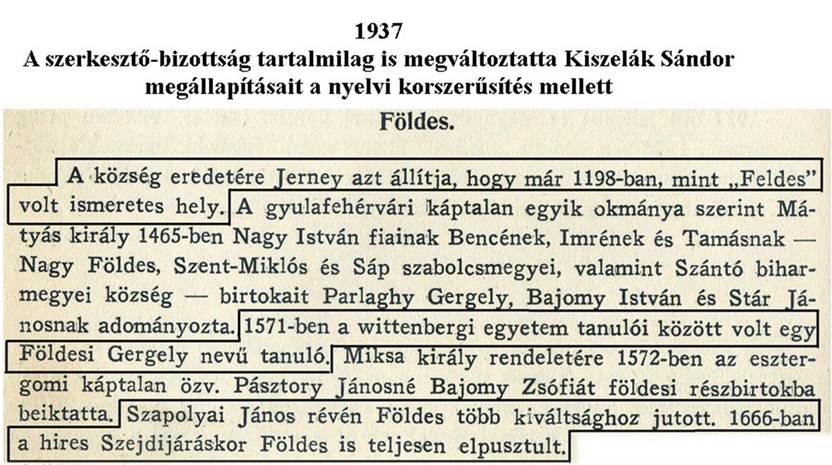 „Feldes” volt ismeretes hely”, ezzel hozzácsatolta a falunkhoz. A
