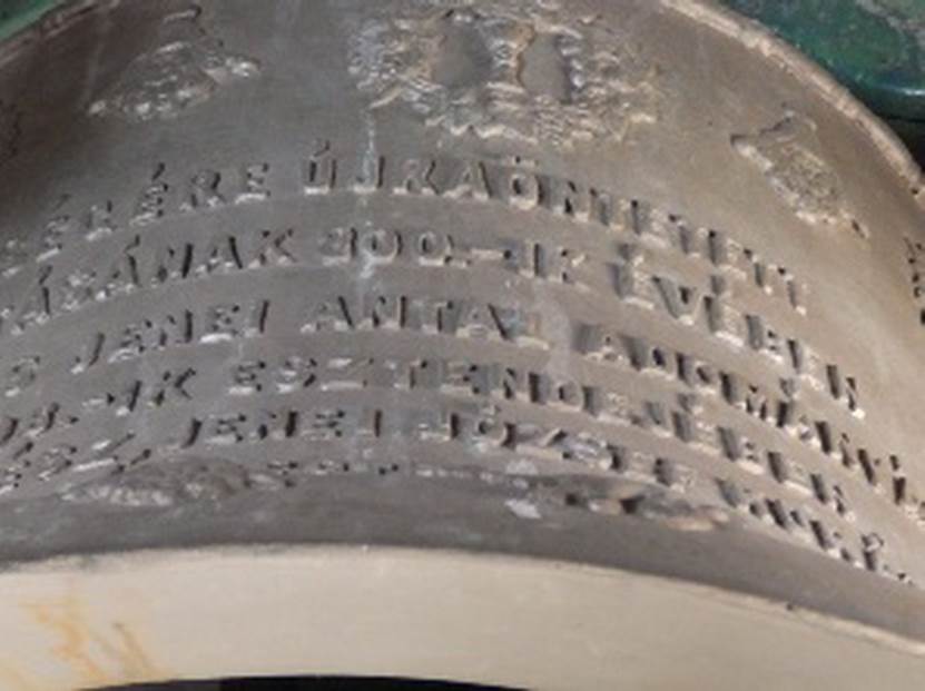 800 évre utaló feliratot az újraöntött kisharangon -
