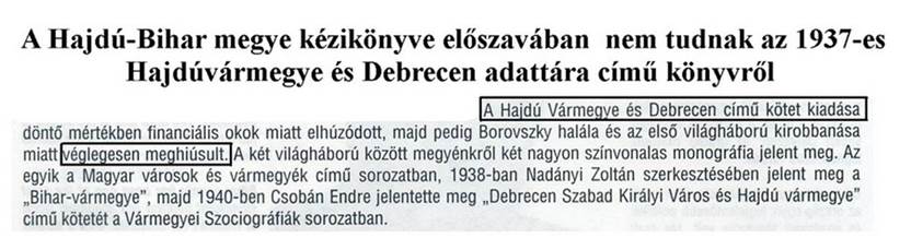 hitte, hogy a „Hajdumegye leirása” adata hiteltelen. Nem tudta, hogy ebben a