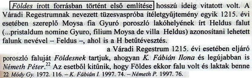 hogy az első írásos említés az 1215-öt jelent Földes említésére.” Ekkor