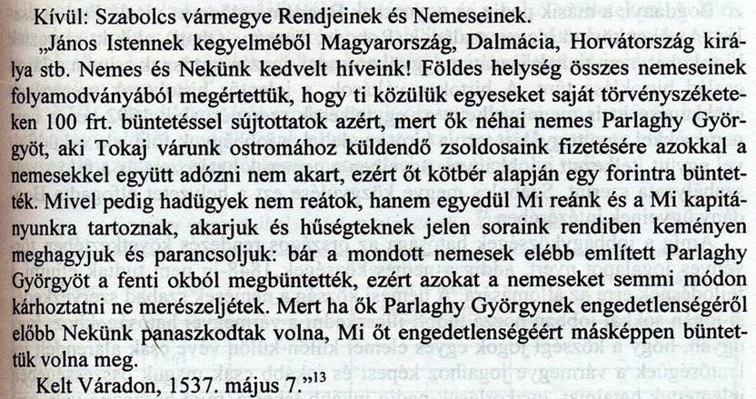1537-es királyi rendeletére céloz, Szejdi pasa dúlásánál téved, mert az
