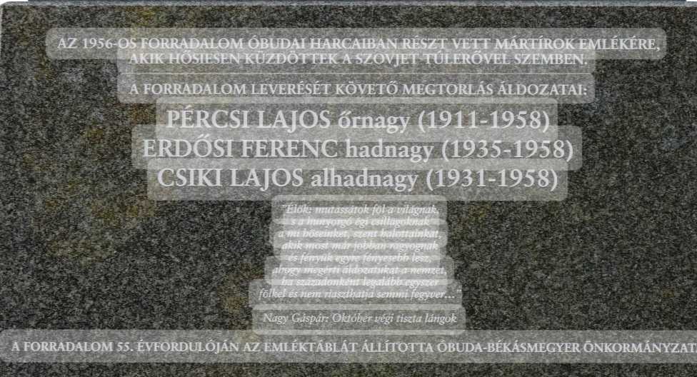 A rendszerváltás hozta meg a rehabilitációjukat: „Ezt az ítéletet az 1989. évi XXXVI. Törvény 1.§-ban írt rendelkezés folytán semmisnek kell tekinteni.” 1990. július 5-én Pércsi Lajost ezredessé, Csíki Lajost és Erdősi Ferencet alezredessé léptette elő a Magyar Köztársaság elnöke. A Nemzeti Pantheonná alakított 301-es parcellában, kopjafával és névvel ellátott márványlapos sírjukat ma már a kegyelet virágaival bárki felkeresheti.