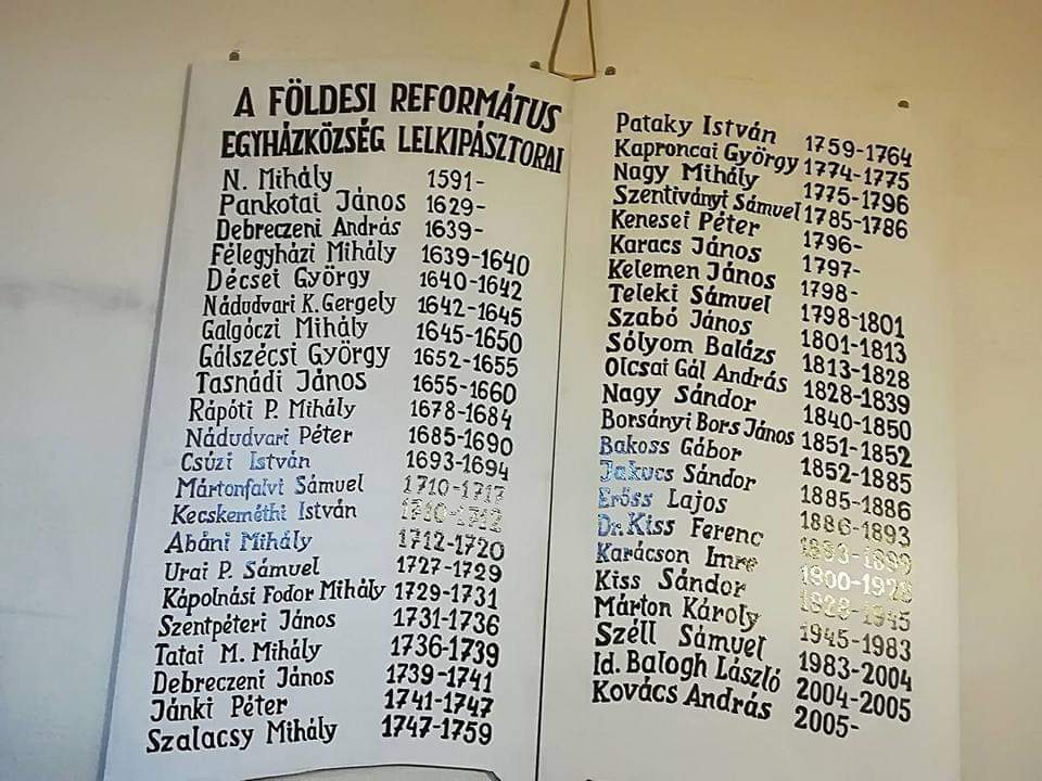 Földesen lelkész Szalatsi Mihály. Ez alatt az idő alatt 15 alkalommal volt