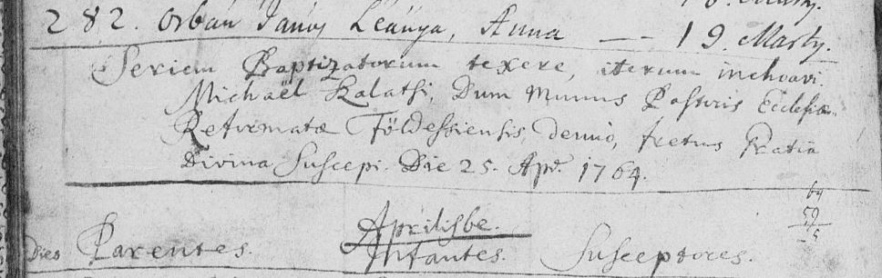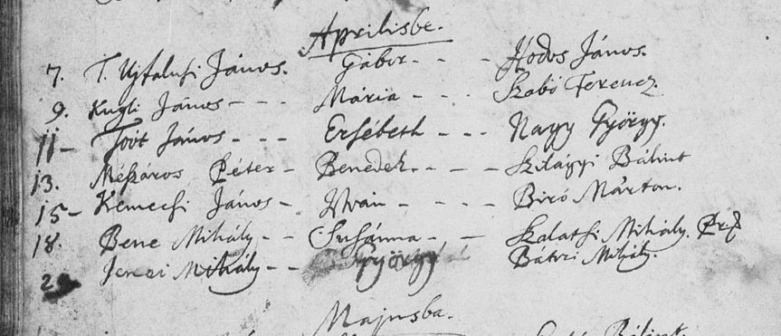 Mihály 1764–1774 második kép 1774. április 18-án még keresztszülő